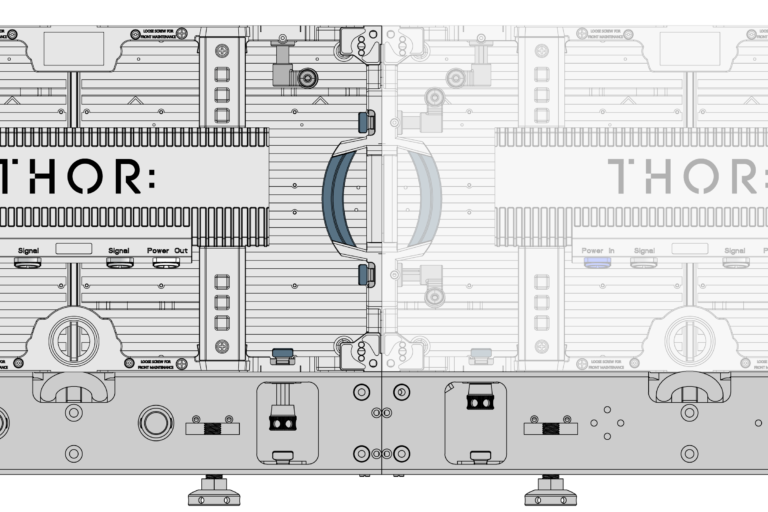 Power to the LED wall is provided in a pass-through daisy chain configuration. Power enters the wall at one of the LED panel’s power supplies and then each subsequent panel receives power from the panel before it.